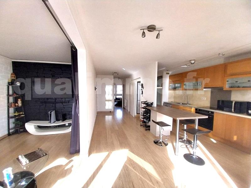 CLERMONT, en exclusivité non loin de la Place des Carmes et du CHU ESTAING, à proximité des écoles, lignes de Bus T2C, TRAM et gare SNCF, à voir ce bel appartement traversant aux volumes ouverts, d'inspiration contemporaine, aménagé façon 'loft' et situé en étage élevé (avec ascenseur) d'une copropriété bien tenue. D'une surface habitable de 64,28 m², il se compose d'une très belle cuisine entièrement équipée avec îlot central ouverte sur l'espace de vie et le balcon à l'aspect Sud, un salon ouvert sur l'espace de vie à l'aspect Sud, une grande chambre de 17,21 m² avec dressing à l'aspect Nord, salle d'eau aménagée avec douche à l'italienne, WC séparé. Tous les volets sont en Alu à commande électrique. L'installation électrique a été refaite. L'appartement est équipé d'une climatisation et est relié à la fibre optique. Une cave et une place de parking privatives viennent compléter ce bien. Le chauffage collectif est relié au nouveau réseau de chaleur urbain (alimenté par une centrale de co-énergie) depuis novembre 2022, pour une meilleure gestion des coûts de chauffage et une meilleure approche énergétique et environnementale. DPE: étiquette énergie D. DPE établi le 17/11/2025. Provisions sur charges courantes mensuelles: 149 euros incluant chauffage et eau. Prix: 143 100 euros frais d'agence inclus (dont honoraires d'agence charge acquéreur 6 % TTC). Un appartement 'aérien' en excellent état, sans vis à vis, à découvrir rapidement!!... Réf: 866. Contacter T.MONTEILS: 06.86.67.35.52